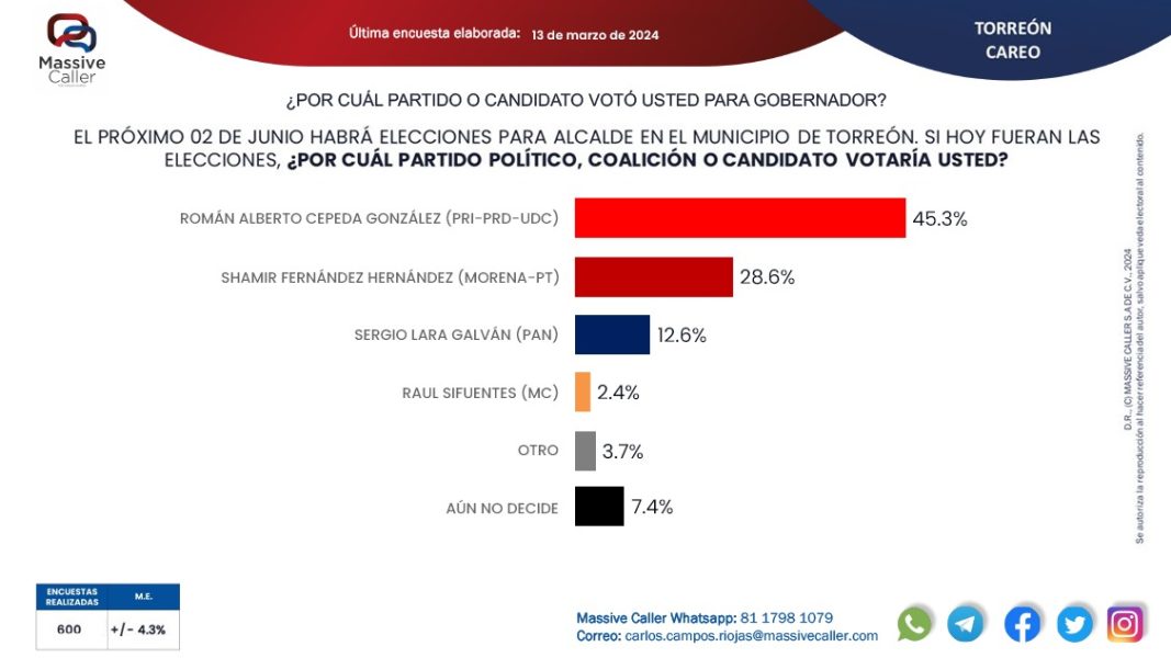 Pero eso no es todo. Según las encuestas recientes, el excandidato no solo lidera la carrera por la alcaldía, ¡sino que va muy por delante de sus rivales! Con un abrumador apoyo del electorado, que aplaude su supuesto «buen trabajo» pasado, Cepeda González se posiciona como el favorito indiscutible para retomar las riendas de Torreón. Sin embargo, sus críticos advierten sobre la posibilidad de un retorno a prácticas cuestionables que marcaron su gestión anterior.