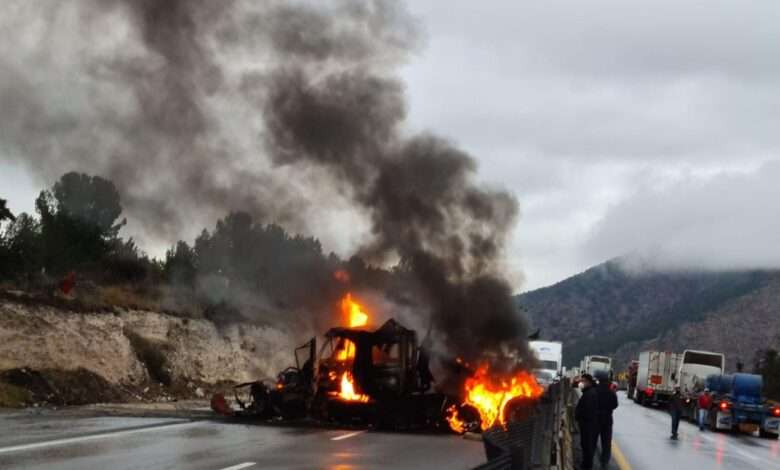 Por fortuna, el chofer logró salir ileso del siniestro que dejó la cabina completamente calcinada.
