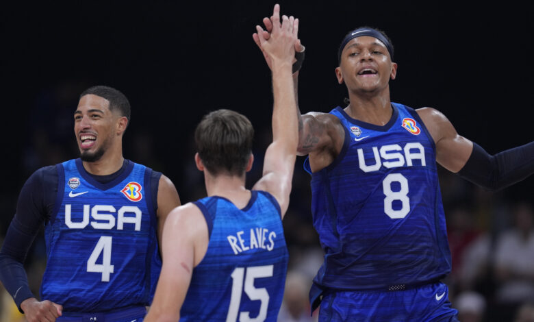 Mikal Bridges anotó 14 de sus 24 puntos en el primer tiempo, Tyrese Haliburton añadió 18 y la defensa de Estados Unidos no dio tregua durante largos pasajes, recuperándose enfáticamente tras haber sufrido su primera derrota en el torneo. Estados Unidos venía de perder por seis puntos ante Lituania en el cierre de la segunda ronda.