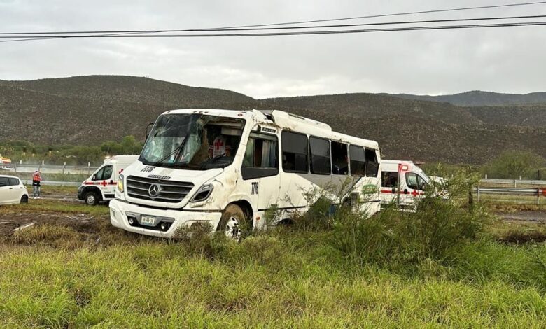 Varios trabajadores de la empresa Yang Feng resultaron lesionados tras sufrir una volcadura sobre la carretera Saltillo-Torreón, cuando viajaban hacia Parras de la Fuente tras terminar su jornada laboral.